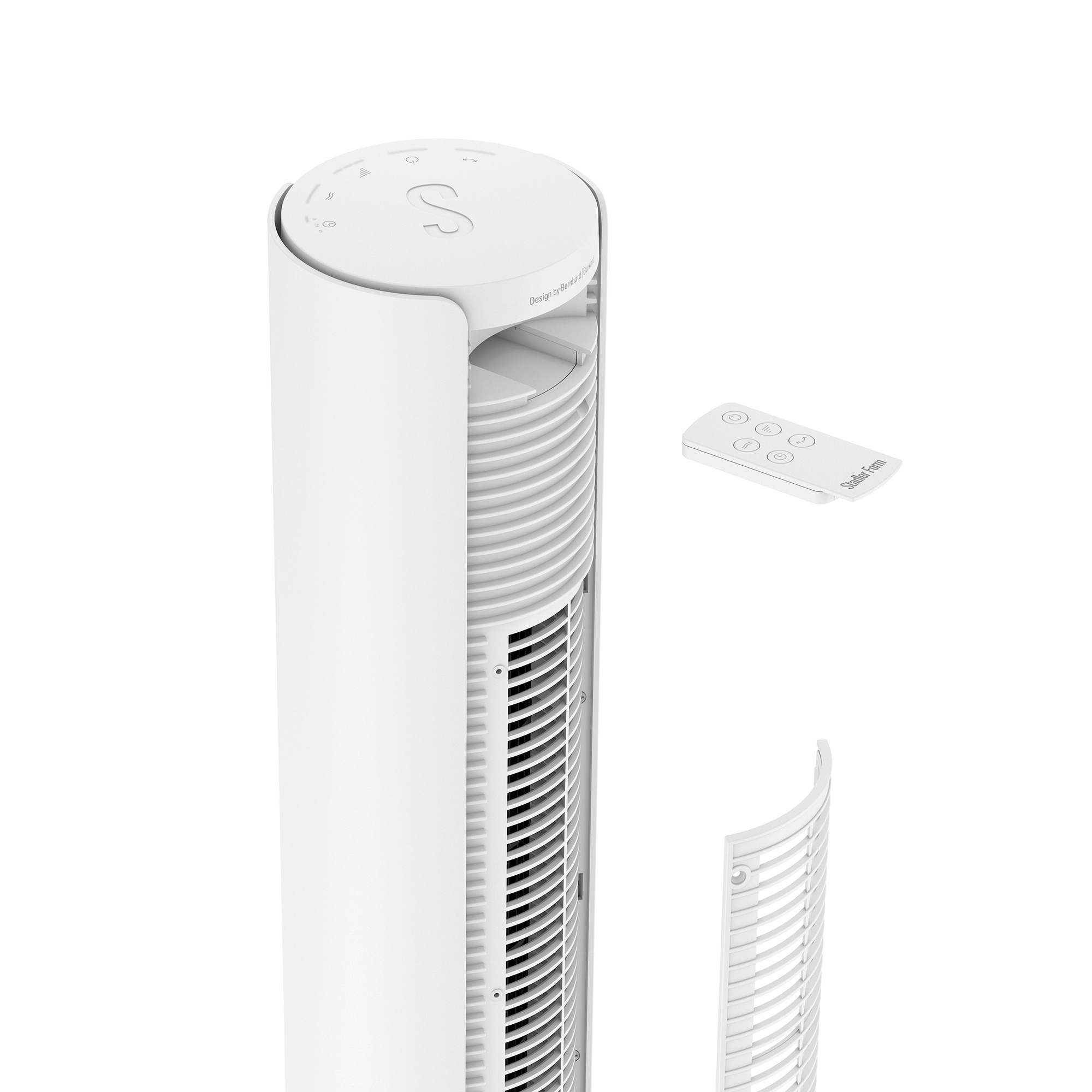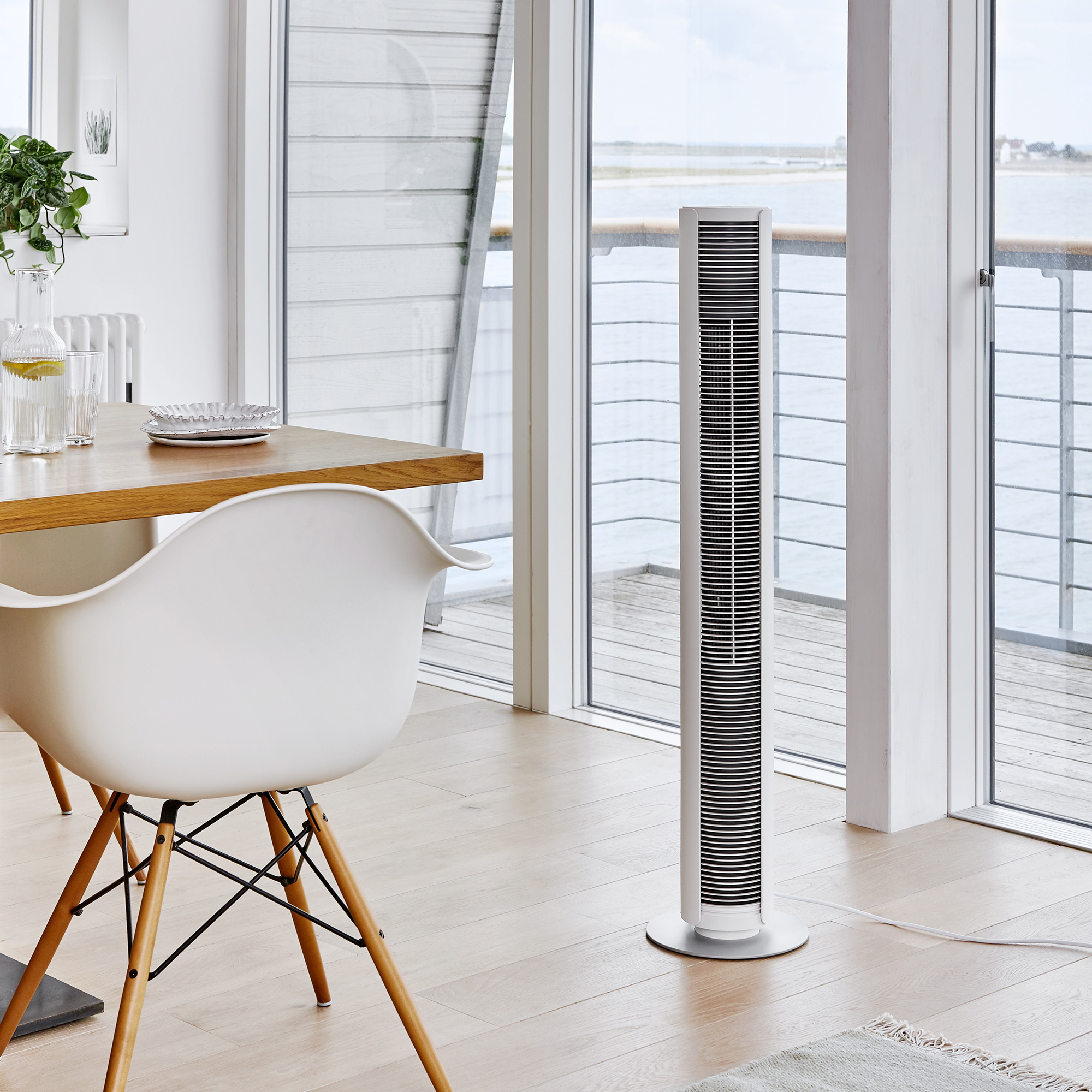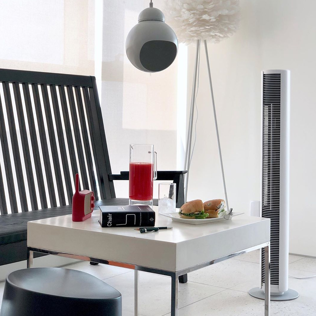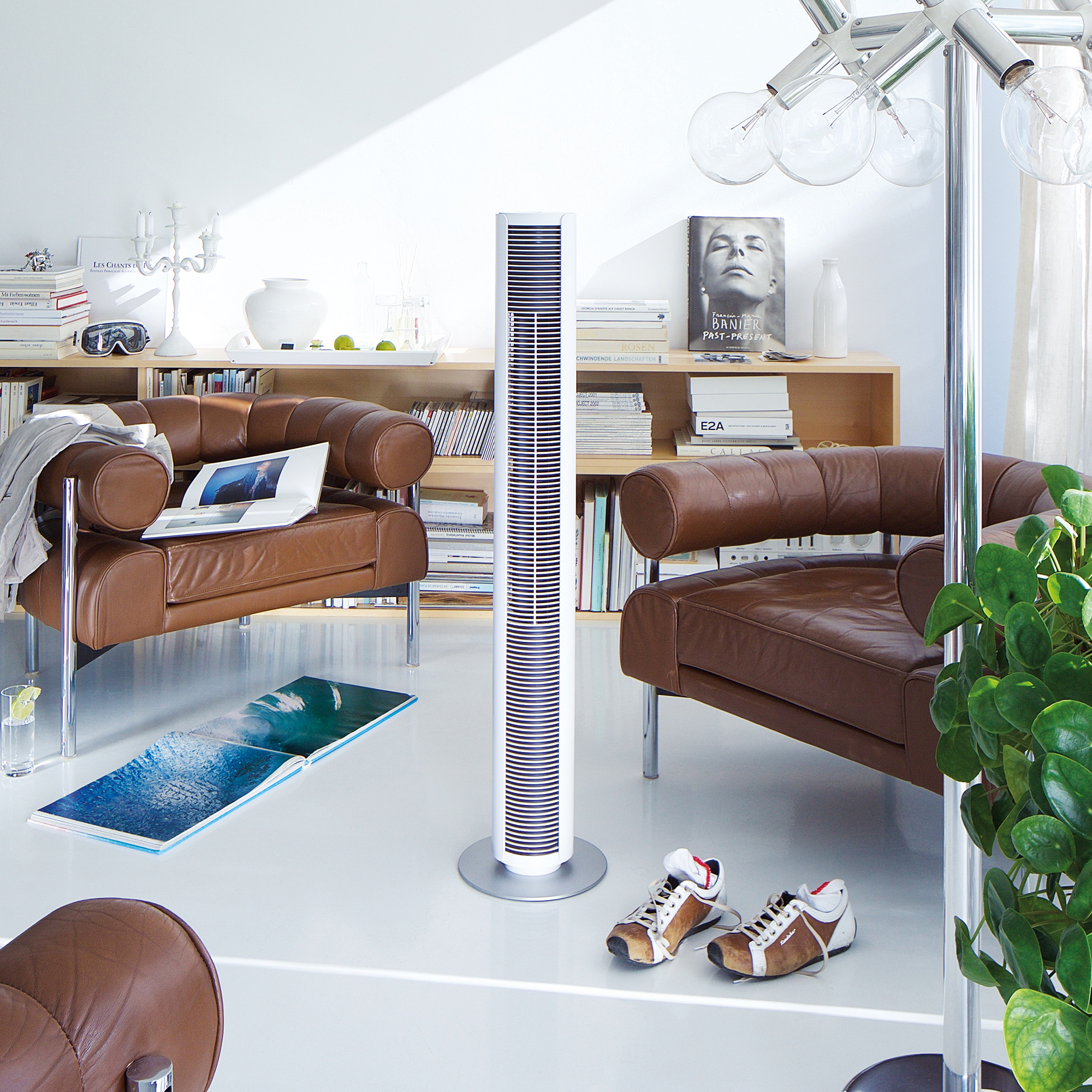 Колонный напольный вентилятор Peter создает в доме и офисе комфортную атмосферу, мягко охлаждая воздух. Специальный режим «Морской бриз» позволяет прибору имитировать настоящий ветер. Поворотный режим обеспечивает равномерное распределение и хорошую циркуляцию охлажденного воздуха. Управлять прибором можно с помощью сенсорных кнопок или пульта. В отличие от лопастных «коллег», колонный вентилятор занимает очень мало места и при этом имеет высокую производительность. Элегантный силуэт и стильные детали Peter-а — работа дизайн-студии BERNHARD I BURKARD.